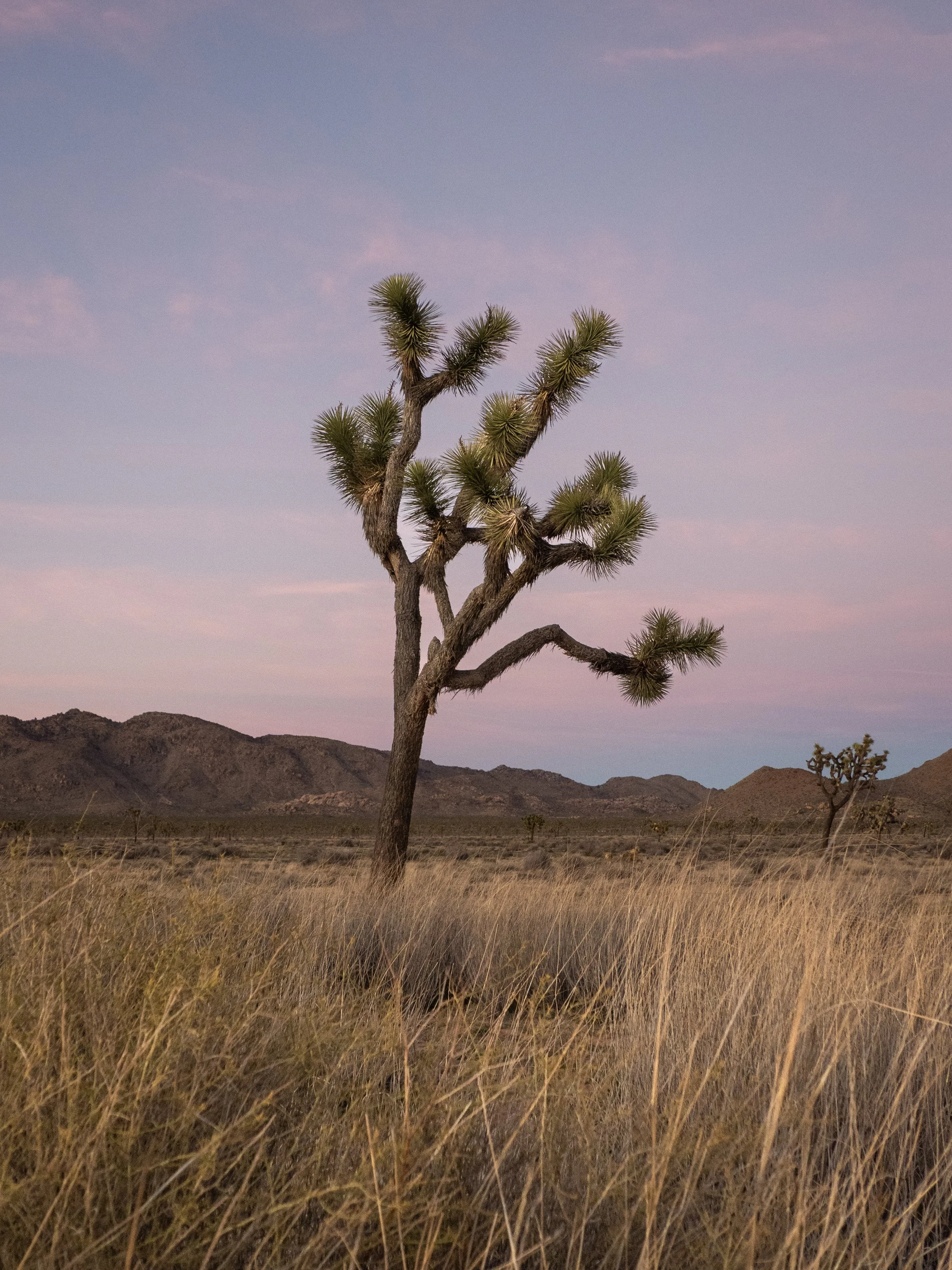 The last thing the desert recently gave me was a spark I thought had lost. While at the park, my friends were taking pictures of the pink desert sky, laughing, and truly enjoying themselves. I looked to my side and in a sea of Joshua Trees there was a lone Joshua. Standing strong and asymmetric in front of mountains. She truly was thriving alone in the golden grass around her. As I walked closer to this lone tree, I heard the laughter of my friends slowly fade away. I was focused on her beauty and happy to visualize this frame of a photo in my head. I grabbed my camera, took a knee and snapped a picture of her. I grinned shortly after knowing that was the shot I wanted. It was a feeling I had not had in a while as a photographer, the warm and overtly satisfactory sensation of a near perfect photo. I got my photography spark back.